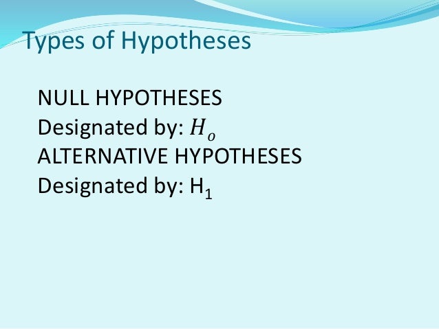 - 13. Types of Hypotheses NULL HYPOTHESES Designated by: 𝐻 𝑜 ALTERNATIVE HYPOTHESES Designated by: H1
